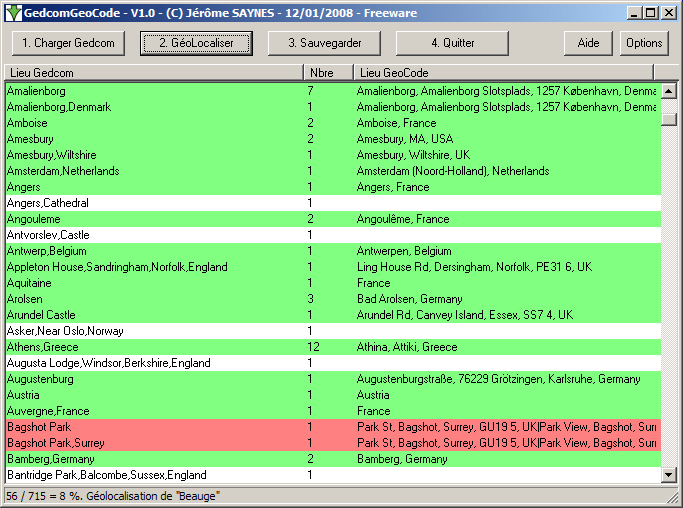 Cliquez ici pour télécharger le logiciel GedcomGeoCode. Il ne nécessite aucune installation. La taille du fichier à télécharger ne fait que 272 Ko.